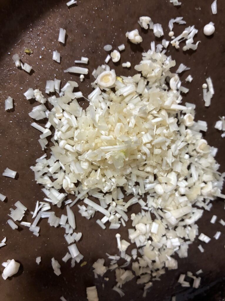 1、フライパンに米油を小さじ1ひいて、中火で温める。