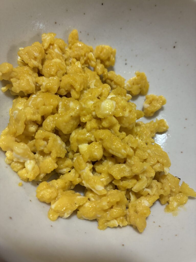 たまごから先に炒めるとあまりフライパンが汚れないので洗わなくてOK✨